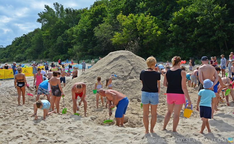 Dziesięcioosobowa ekipa do budowania używa największych łopatek z firmy Wader. Podczas Plażowych Mistrzostw Budowniczych na plażowiczów i turystów czekała Strefa Kolorów Zdrowia Marwit.